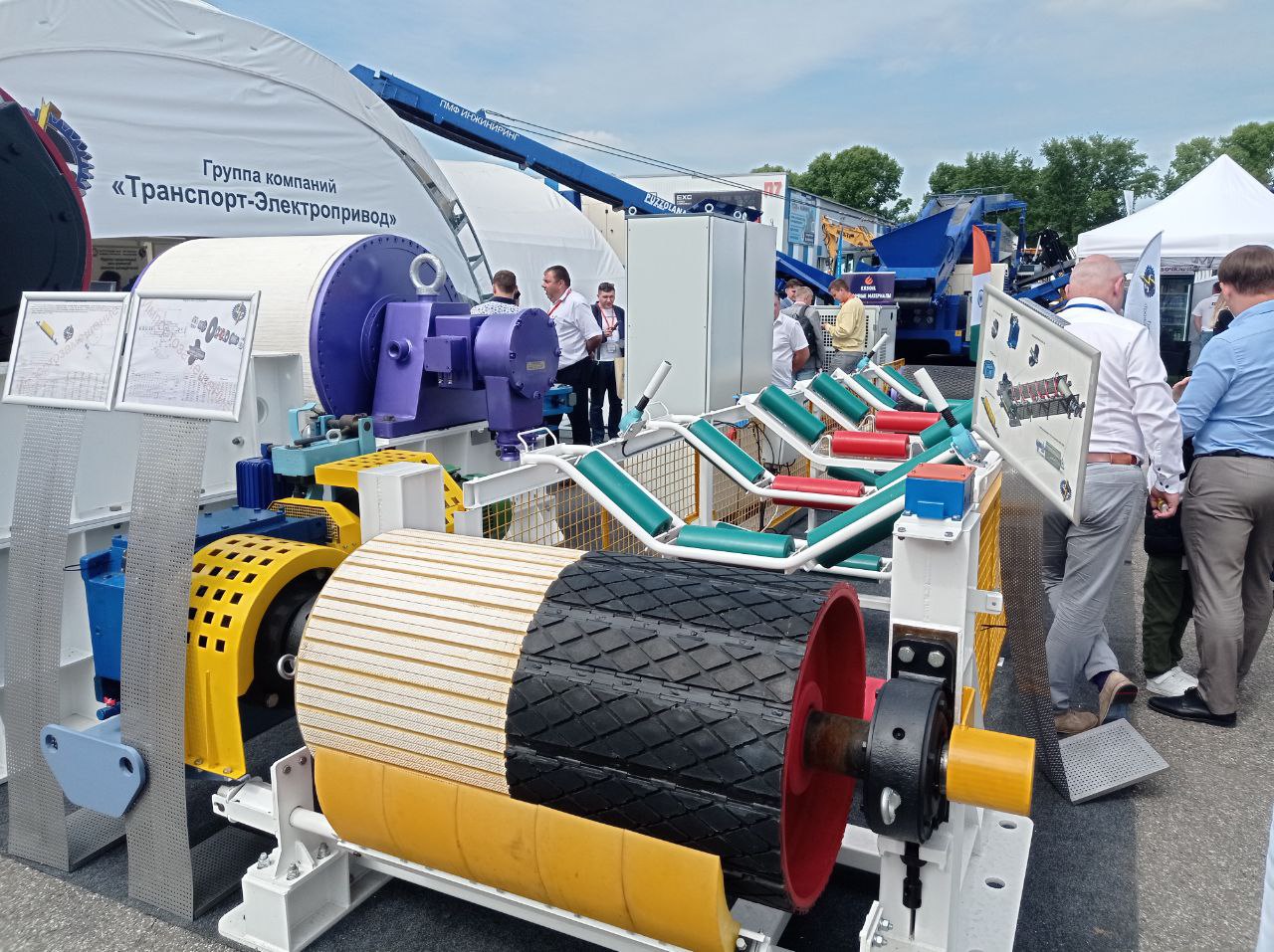 На выставочной экспозиции были представлены разработки Группы компаний в сфере импортозамещения. Также, впервые в РФ, экспонировалась приводная станция конвейера с мотор-барабаном на основе синхронного электродвигателя на постоянных магнитах мощностью 500кВт с аппаратурой управления и устройством принудительного водяного охлаждения.